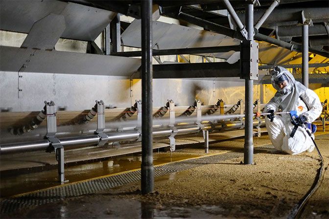 Malteurop undertakes a complete cleaning process, using bleach and high pressure rinsing equipment, every day to avoid any microbiological risk in its malting areas