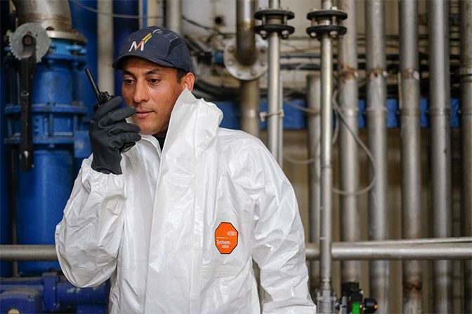 The recommended overalls were tested by Malteurop staff working in various cleaning areas. Following the trials, the Tychem® 4000 S overall was unanimously welcomed. Jamel Bahri, who has worked at Malteurop for six years, says: "I felt safer, the seams are better protected and it fits better at the neck. Together with the dual zip fastener and dual flap, it is really sealed, which re-assures us.”
